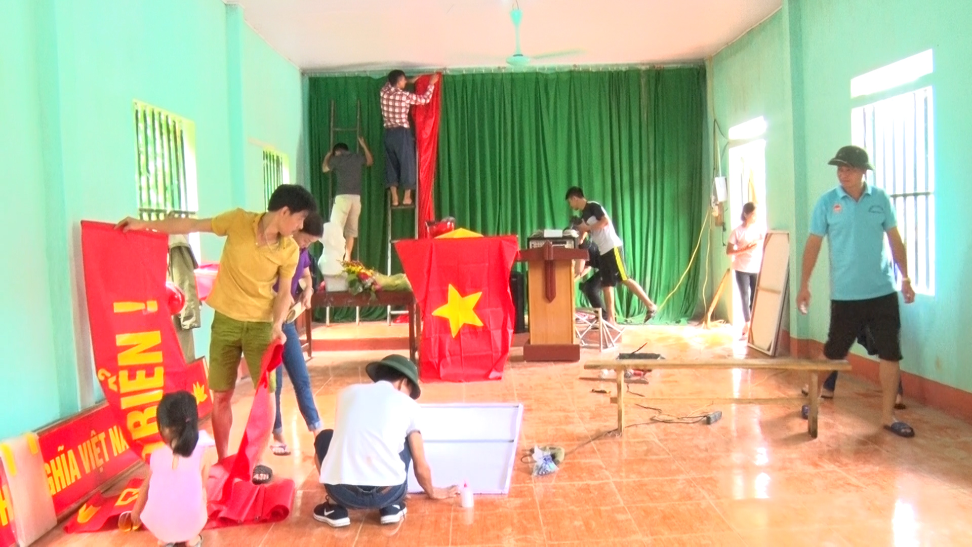 Sau khi trang trí khánh tiết Nhà văn hóa thôn lắp II.