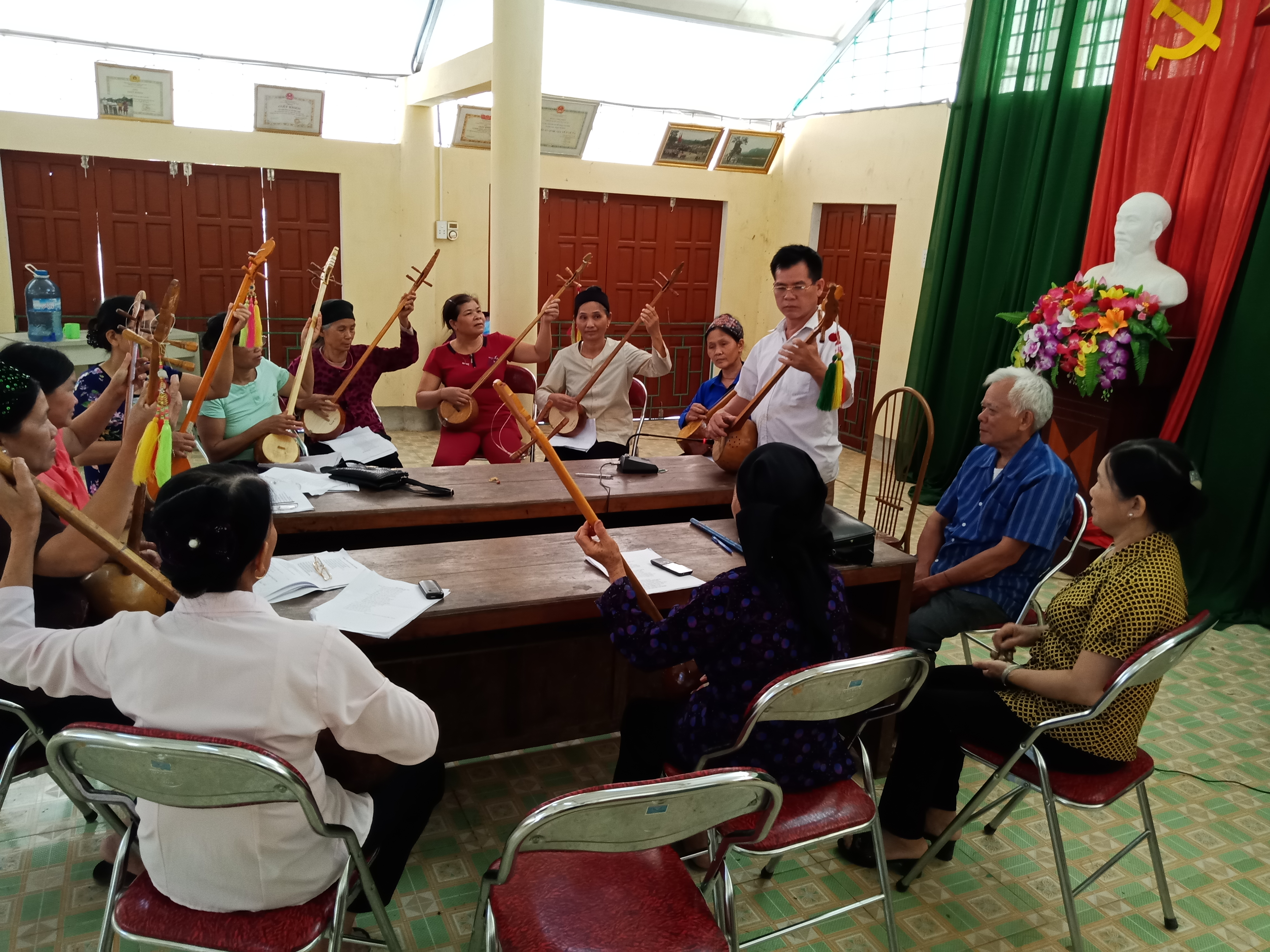 Lớp dạy hát then tại nhà văn hóa xã